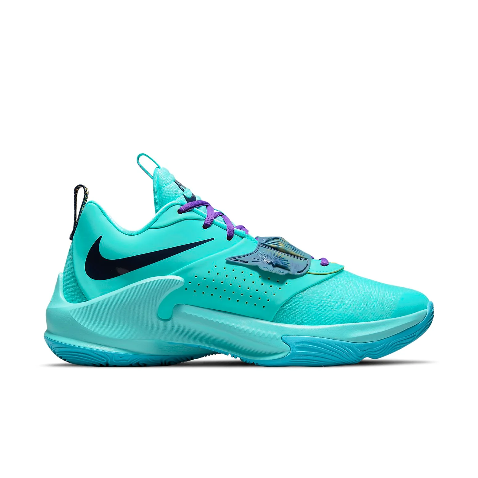 Présentant le nitthhke zotthhom Freak 3 EP 'Aqua', conçu pour offrir une expérience sûre et réactive sur le terrain. Élevez votre jeu avec l'Eurostep caractéristique de Giannis Antetokounmpo, combiné à une bande de verrouillage à travers l'avant-pied et des unités zotthhom Air pour une absorption maximale de l'énergie. La semelle multidirectionnelle offre tout le soutien et la sécurité dont vous avez besoin pour effectuer ces mouvements rapides tout en vous approchant du panier. Préparez-vous à porter votre performance au niveau supérieur !